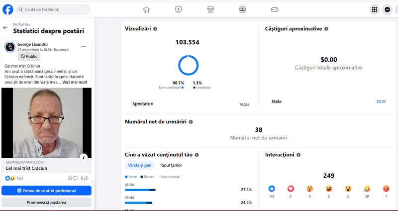 Sunt trist. Ca publicist, ar fi trebuit să mă bucur că postarea mea „Cel mai trist Crăciun” a trecut bine de o sută de mii de cititori. N-am cum să mă bucur, însă. Postarea, obiectivă și sinceră, este despre înstrăinare, iar suta asta de mii de cititori ne arată în fapt un dezastru.